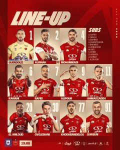 به گزارش سایت رسمی باشگاه پرسپولیس، از سوی کادر فنی تیم فوتبال پرسپولیس، ترکیب قرمزپوشان پایتخت برابر تیم چادرملو اردکان از هفته بیست و دوم لیگ برتر خلیج فارس به شرح زیر اعلام شد: