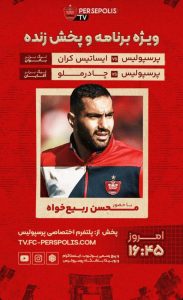 باشگاه فرهنگی ورزشی پرسپولیس در بخش رسانهای و تلویزیون خود، اقدام به ویژه برنامه و پخش زنده دو بازی پرسپولیس برابر چادرملو و ایستاتیس کران فارس از طریق پلتفرم خود نموده است.