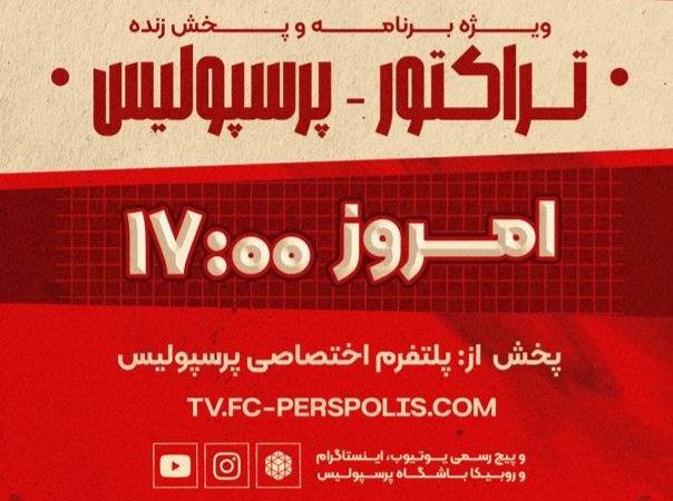 باشگاه فرهنگی ورزشی پرسپولیس در بخش رسانهای و تلویزیون خود، اقدام به پخش زنده بازی پرسپولیس برابر تراکتور از طریق پلتفرم باشگاه نموده است.