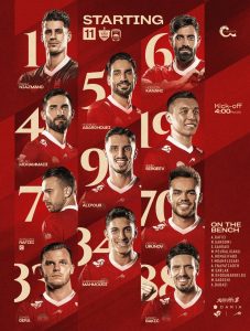 به گزارش سایت رسمی باشگاه پرسپولیس، از سوی کادر فنی تیم فوتبال پرسپولیس، ترکیب قرمزپوشان پایتخت برابر تیم چادرملو اردکان از هفته نوزدهم مسابقات لیگ برتر خلیج فارس، به شرح زیر اعلام شد: